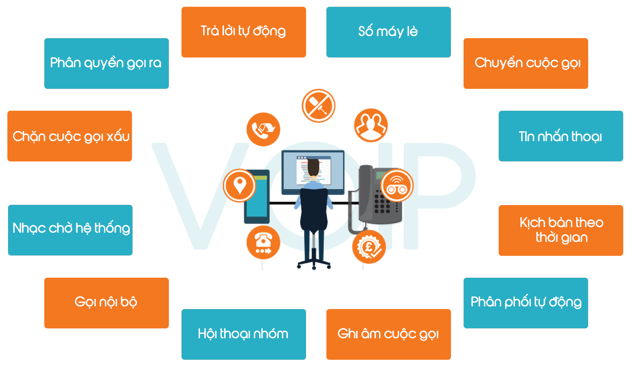 Ghi âm, quản lý lịch sử cuộc gọi, trả lời tự động, phân phối cuộc gọi thông minh,…
